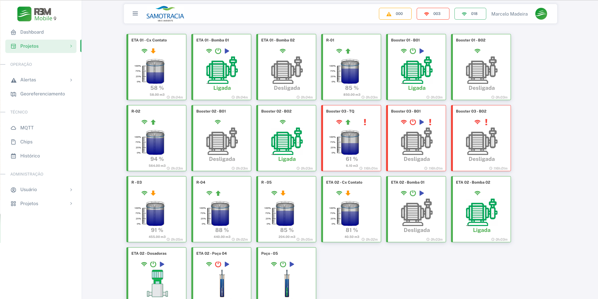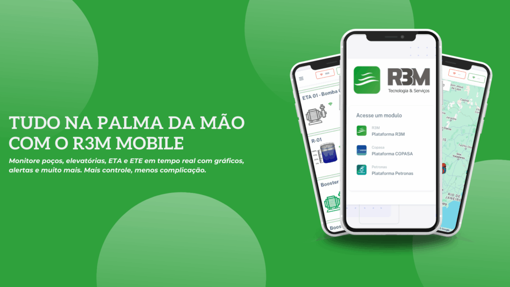 O R3M Mobile é uma plataforma completa de monitoramento remoto, desenvolvida para ser simples, intuitiva e acessível. Compatível com Android, iOS e Web, permite o acompanhamento em tempo real de equipamentos em campo, com informações organizadas de forma visual, utilizando ícones, alertas e gráficos dinâmicos que facilitam a tomada de decisão.